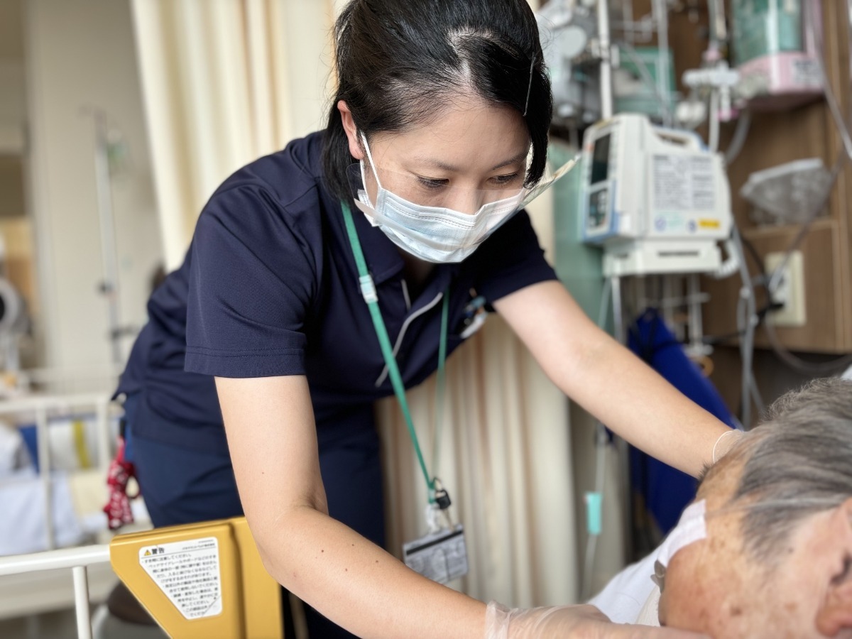 脳血管疾患、廃用症候群、誤嚥性肺炎、内部疾患を伴う摂食・嚥下障害を中心にリハビリを行っています。 摂食嚥下認定看護師と協働で姿勢や食事介助方法などの調整行っています。また、積極的に摂食・嚥下機能評価入院の受け入れを行っております。 必要に応じて、嚥下内視鏡検査(VE)、嚥下造影検査(VF)を実施し、詳細な評価を行っています。